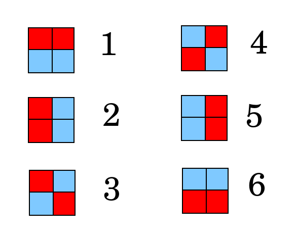 To illustrate, consider first this how to test 6 people using 4 sample wells (forget the controls for now). If each sample well is either red for positive or blue for negative, there are 6 ways to color the wells such that exactly 2 sample wells are positive.